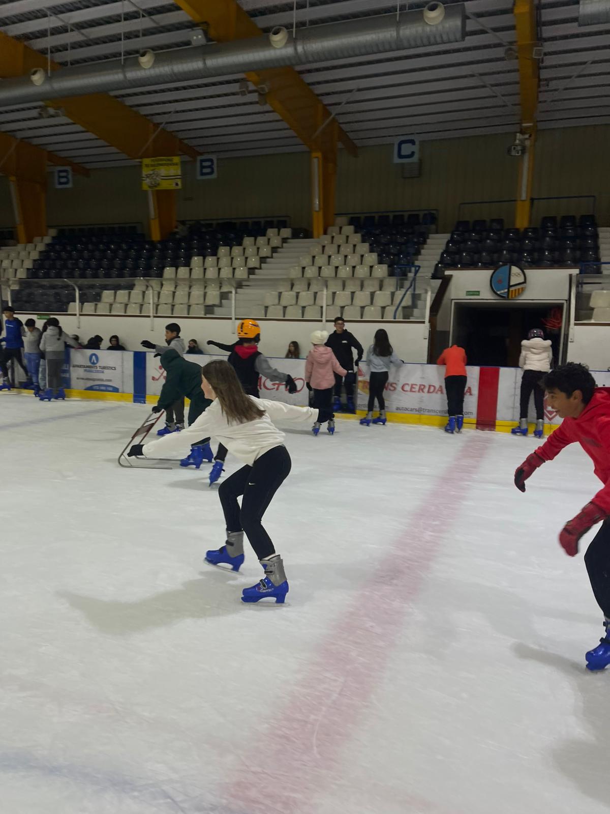 Dins de la matèria d’educació física dels de 1r. ESO han pogut gaudir en aquesta ocasió, junt amb els seus professors d’una bona estona i han anat tots plegats a patinar sobre gel a Puigcerdà.